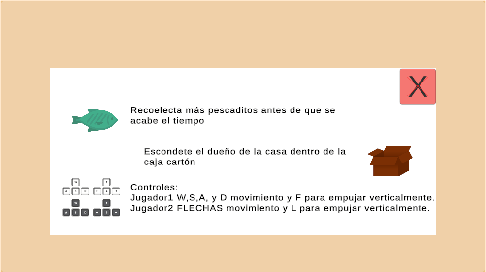 Jugador 2 : flecha superior = saltar - flechas laterales e inferior movimientos laterales e inferior - L golpear al otro jugador verticalmente.